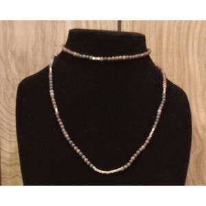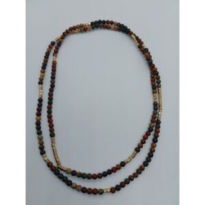 Natural Stone Agate Metal Beaded 34" Elastic Stretch Necklace