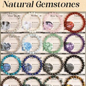 Natural Stone Beaded Stretch Bracelet Healing Crystals Protection Jewelry Gift