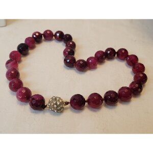 Natural Stone Faceted Red Agate Bead Necklace W/ Magnetic Rhinestone Clasp