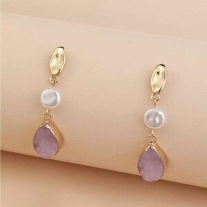 Bohemian Drop Dangle Earrings Natural Pink Gemstone Handmade Boho Style Jewelry