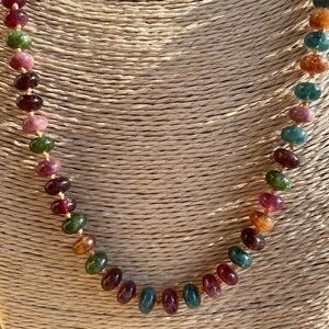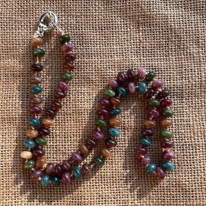 Natural Stone Rondelle Colorful Tourmaline knotted Necklace Handmade New