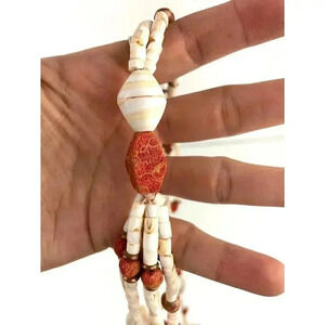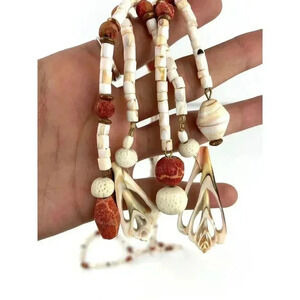 Natural Stone Seashell Beaded Necklace with Dangle Accent Long Wired Boho Style