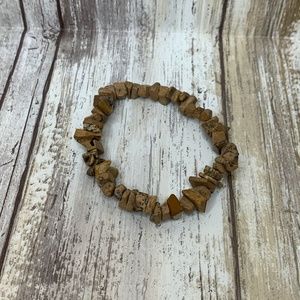 Natural stone shell like cut bracelet. 4" diameter 8" elastic bracelet Brown with black dots
