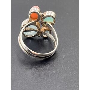 Natural Stone Sterling Moonstone Aquamarine Blue Topaz Morganite Cluster Ring 8