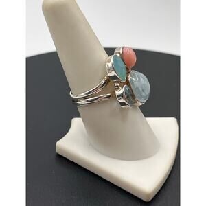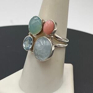 Natural Multi Stone, 925 Sterling Pastels Moonstone Aquamarine Blue Topaz ? Morganite Cluster Ring