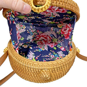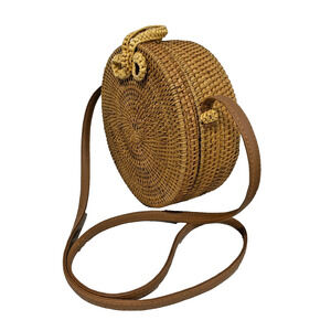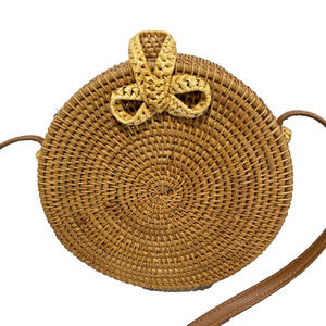 Natural Straw Brown Wicker Shoulder Crossbody Bag Purse Cottagecore Boho Preppy
