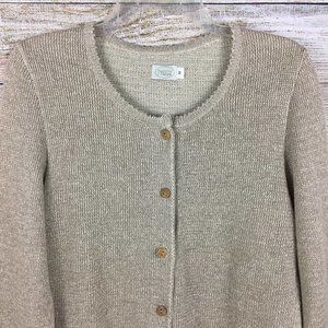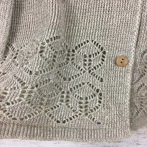 Natural Style Cardigan Sweater Linen Blend Open Weave Embellished