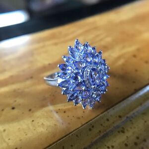 Natural Tanzanite Sterling Silver Cocktail Ring Size 7