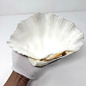 Natural Tridacna Clam Shell 8.5"x5.75"x3" White Coastal Nautical Ocean Decor
