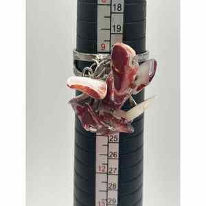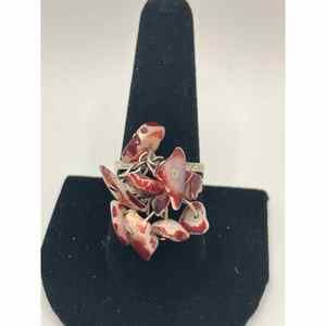 Red and White Dangle Natural Trochus Shell Beads Shards 9.5 Adjustable Silver-Tone Ring!