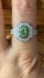 This gorgeous ring is made with completely natural, earth mined Tsavorite garnet. The clear accent stones are authentic moissanites. Moissanites are a very popular and durable lab created diamond replacement. On the Mohs scale of hardness, a moissanite is around a 9.5, making them perfect for daily wear. They are additionally very sparkly. The total carat weight on the ring is 1.60. The ring is set in solid .925 sterling silver with a rhodium plate to prevent tarnishing. The ring in the photos is the actual one you will receive, so please see photos for quality and measurements. Size 8.