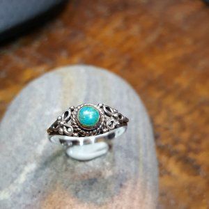 natural Turquoise sterling ring size 8.5. Vintage sterling with flower detail on sides natural stone turquoise ring size 8.5" marked .925