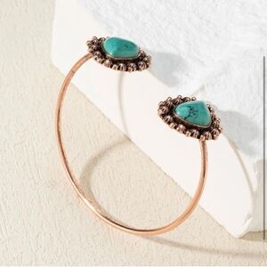 Brand new. Pretty natural turquoise rose gold tone bangle bracelet.