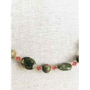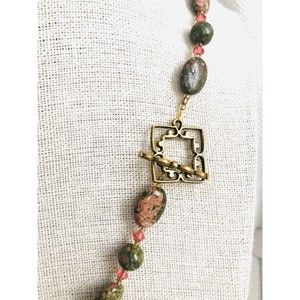 Natural Unakite Gemstone and Glass Beads Artisan Necklace 19 inch