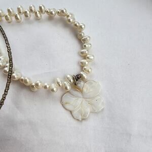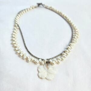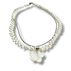 Natural White Genuine Pearl Necklace Freshwater flower mother of pearl Choker