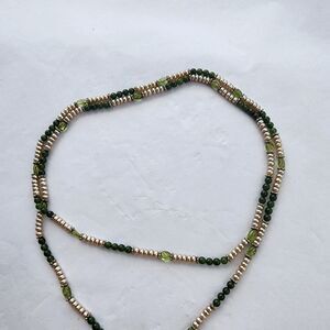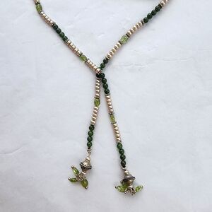 Natural White Pearl, Peridot And Jade Lariat Necklace Long Bohemian Green Cream