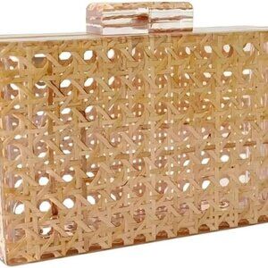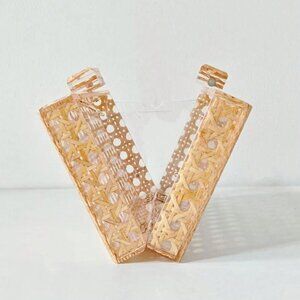 Features: This beautiful natural wicker clutch has an intricate geometric woven rattan pattern, adding elegant texture and visual interest. The compact, boxy shape makes it versatile enough for both casual daytime outings and dressier evening events. Its lattice-style weave hints at the interior, giving it a unique, eye-catching look. Light and structured, it’s perfect for carrying essentials in style.