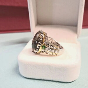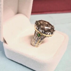 Perfectly Placed Crown 👑 Surrounding A Generous Natural Willemite Center Stone & Natural Chrome (Russian) Diopside Ring In 14k YG & Platinum Vermeil Over Sterling Silver.