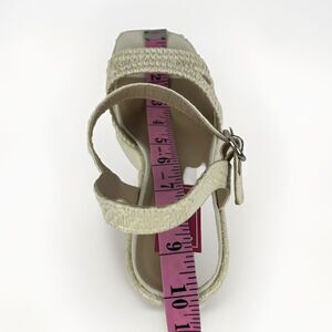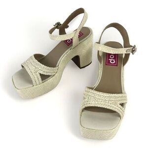 POP Aplaud Natural Womens Chunky Platform Heel Sandals open Square Toe Adjustable Ankle Strap Textured Fabric SZ 8.5 MSRP $75