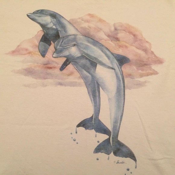 Natural Wonders T-Shirt White Dolphins Marine Ocean 100% Cotton Medium