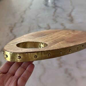 Natural Wood Cheese Board With Golden Edge Gold Accents