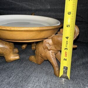 Natural Wood Elephant Serving Fruit Tray Bowl Food Dish Platter Plate Thailand