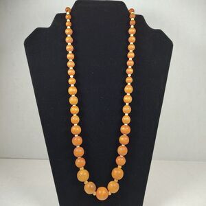 Natural Wood & Plastic Beaded Necklace SIlver Tone Metal 24" Graduated Bohemian
