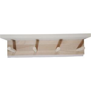 Natural Wood Wall-Mounted Coat Rack – 4 Pegs, Whitewashed Shelf Surface 13" x 3"