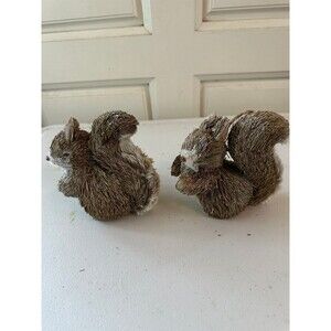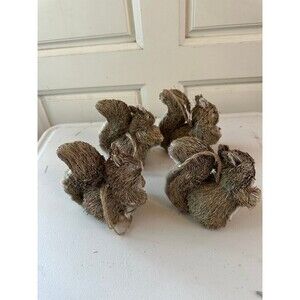 Natural Woodland Straw Squirrel Animal Figurine Christmas Ornament Set Of 4