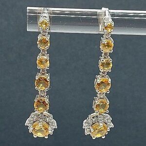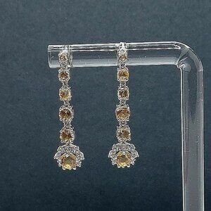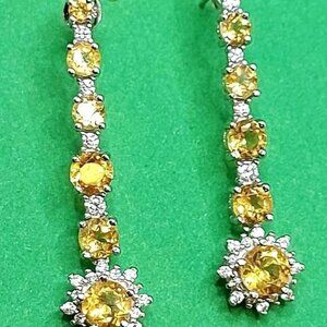 Natural Yellow Citrine 6mm & Cz 925 Sterling Silver Earrings