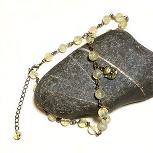 Natural Yellow Green Prehnite Necklace, Bronze Fortune Cat + Genuine Gemstone