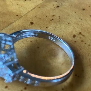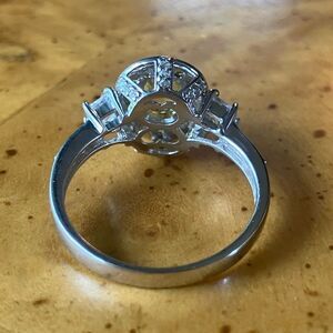 This gorgeous ring is made with genuine, earth mined yellow sapphires (heated) and white zircons. The sapphire in the center is 7x5 mm. The ring is set in solid .925 sterling silver, and it also has a rhodium plate to prevent tarnishing. Please see photos for gemstone quality and measurements. The ring in the photos is the one you will receive. Sapphires are a 9 on the Mohs scale of hardness. This ring would be excellent for everyday wear. Size 7.