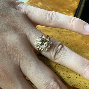 This ring is so vibrant and warm on the hand. All of the gemstones on the ring are earth mined. It includes yellow zircon, yellow sapphire, and white zircon. Zircons are earth mined gemstones. They are oftentimes confused with cubic zirconia, which is a man-man gemstone. The total gemstone carat weight on the ring is 2.15, with the yellow zircon in the center measuring 7x5mm. The ring is set in solid .925 sterling silver with an 18k yellow gold vermeil. The ring in the photos is the actual one you will receive, so please see photos for quality and measurements. Size 6.