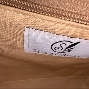 Natural fiber woven Satchel Crossbody Half Moon Circle Handle vacation beach bag