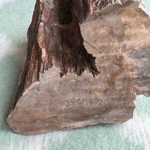 Enhance your home with this exquisite natural petrified wood stone sculpture. Its earthy brown tones add a touch of elegance to any space. You can see the wood grain in the stone. Very heavy, 3lb 15oz. About 5.5” tall, 5” wide base.