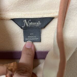New with tags natural reflections 2X fleece jacket. This jacket is new with tags. It does have pallet dust going up one sleeve you can see in the pictures. I’m sure it probably will come out in the wash because it’s new with tags. I really don’t want to wash. Other than that, this is a really nice jacket.
