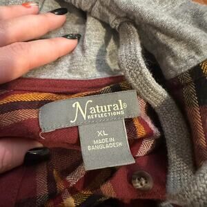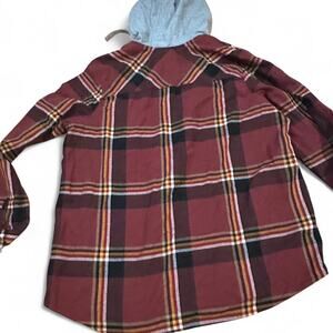 Natural reflections Shacket Burgundy and multi-coloured plaid hoodie shirt