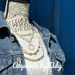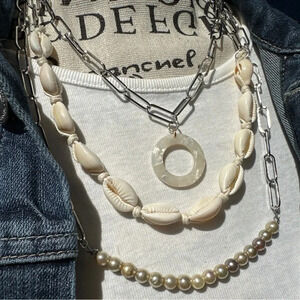 Natural seashell maxi silver statement chunky layered necklace set/combo