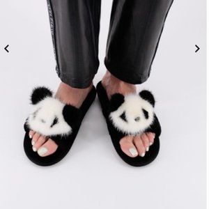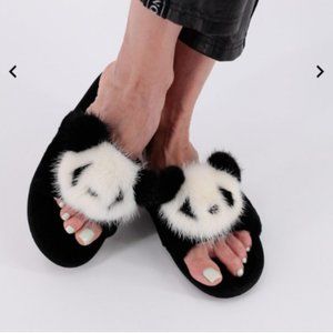 Flip Flops, Natural shearling and Mink Fur. Panda Face.