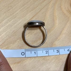 Not sure of ring size but pictured tape measure is in cm. Love this for its natural look but too large for me.