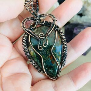 Natural Bloodstone Copper Wire Wrapped Pendant