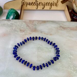 Materials: Natural Lapis Lazuli Irregularly Shaped Chips with silver color spacer beads on elastic stretch cord