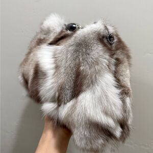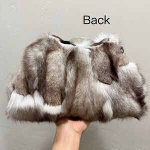 Handmade from Nature Fox fur, with uniquely custom metal frame. Spacious enough for your phone, wallet, cosmetics, book, compact umbrella, and other items. Includes 2 strap styles, use in multiple ways.