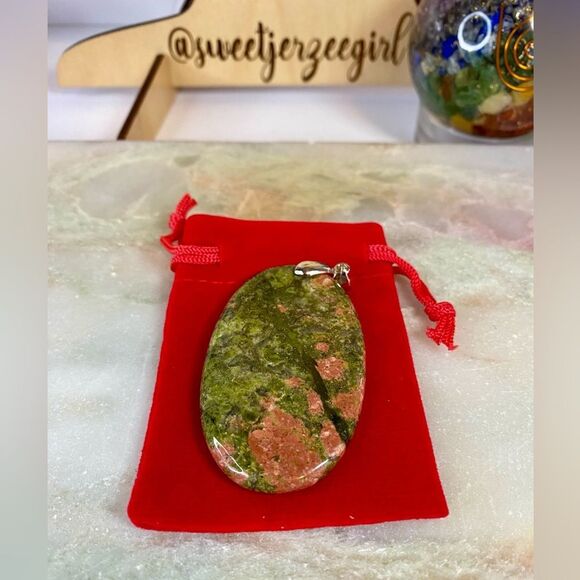 Natural Green Unakite Jasper Stone of Self Love Oblong Slab Pendant