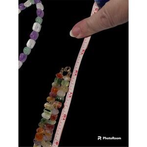 Multi natural stone necklace 24” with gold toned clasp. No markings. EUC from smoke free home.