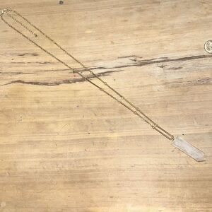 Natural Quartz Crystal Encased In Gold Tone With A Bar Chain