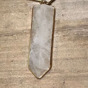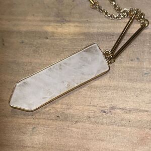 Natural Quartz Crystal Encased In Gold Tone With A Bar Chain