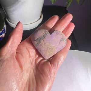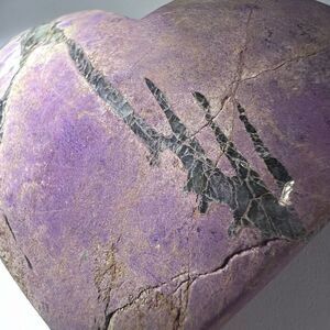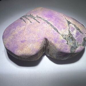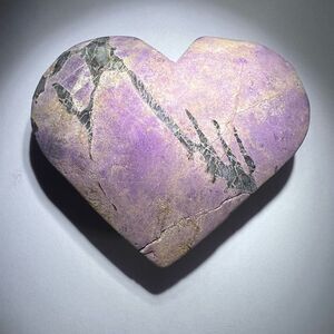 A purpurite natural raw heart carving showcases a vibrant violet hue, symbolizing spiritual transformation and growth. This unique stone is believed to enhance intuition, promote mental clarity, and aid in overcoming fears. Its calming energy supports emotional healing and encourages open communication.