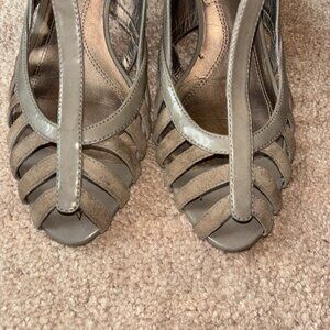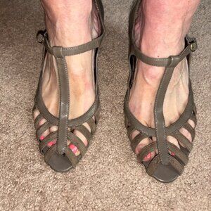 NaturalSoul Strappy Taupe Mid-Heel Leather Pumps 9.5