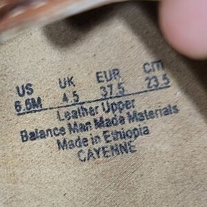 Lovely brown leather Cayenne slingback sandals by Naturalizer. Sandals have a hook and loop closure, cushioned footbed with contrasting white stitch throughout. Shoes are in good pre-owned condition.